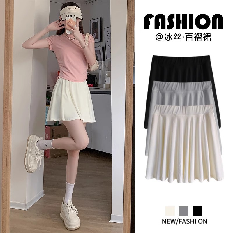 运动休闲瑜伽百褶裙显瘦凉爽冰丝百褶裙女夏季高a字半身裙小个子显瘦芭蕾短裙子
