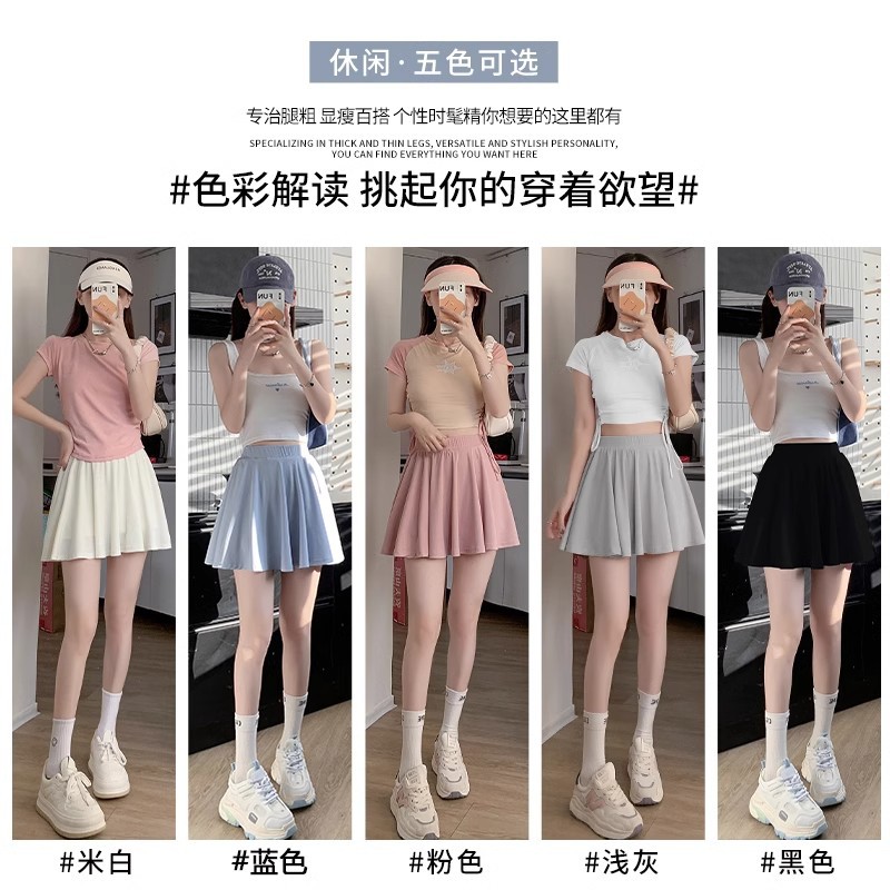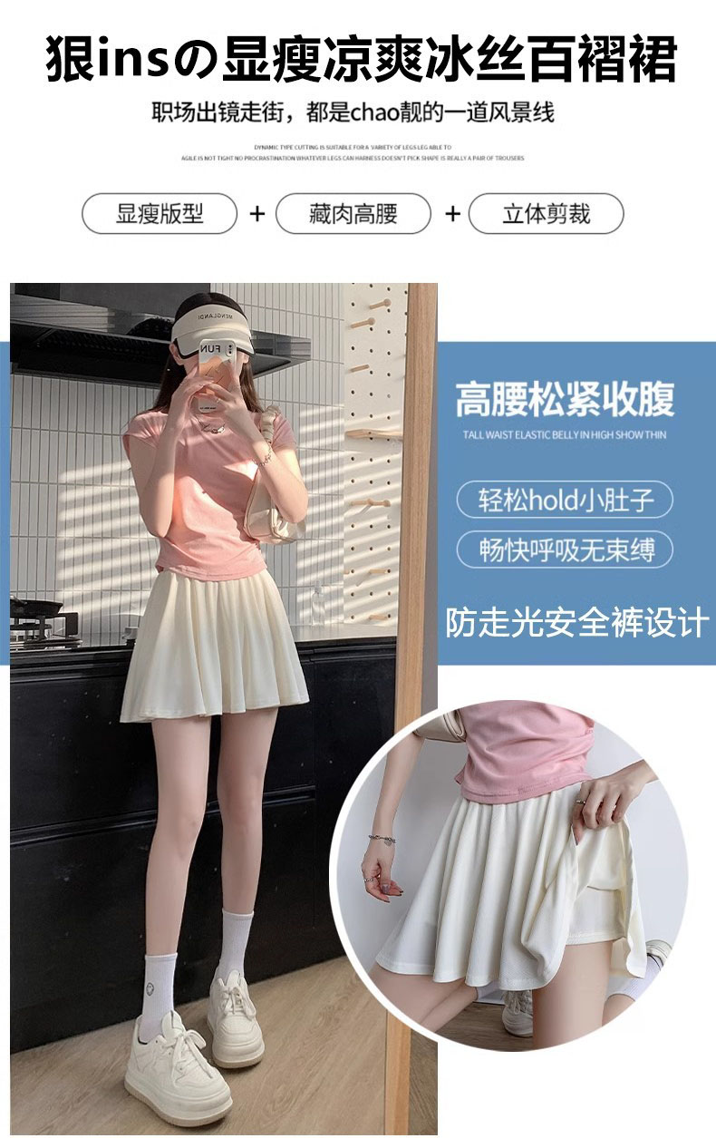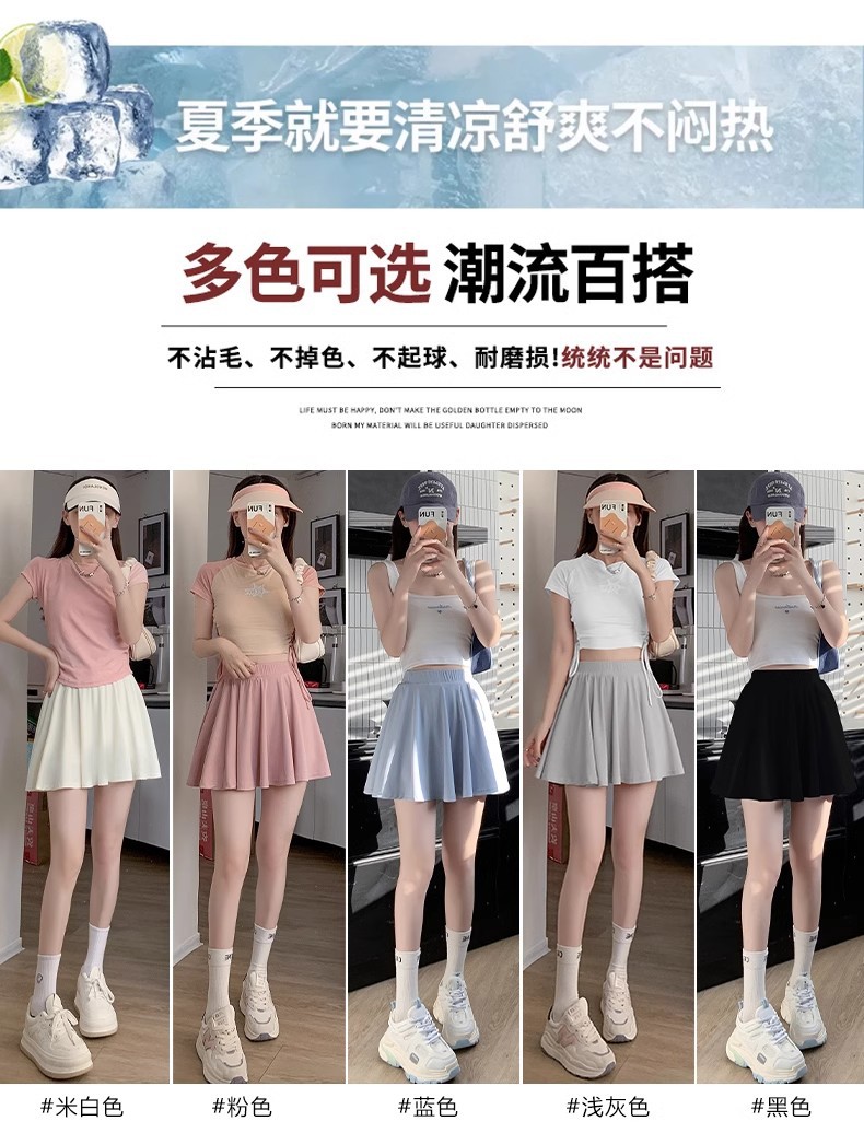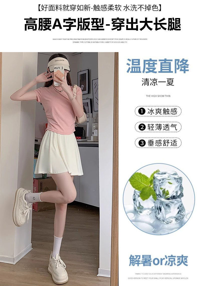 运动休闲瑜伽百褶裙显瘦凉爽冰丝百褶裙女夏季高a字半身裙小个子显瘦芭蕾短裙子