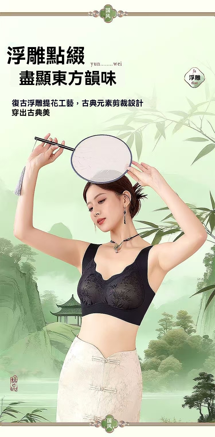 國風中式浮雕艾草養護杯無痕内衣調整型承託聚攏提拉大碼文胸防下垂收副乳內衣,穿起來很舒適、更顯瘦,限188名優惠!