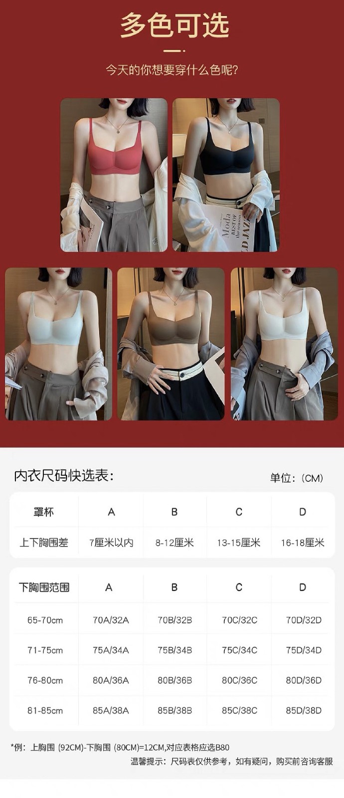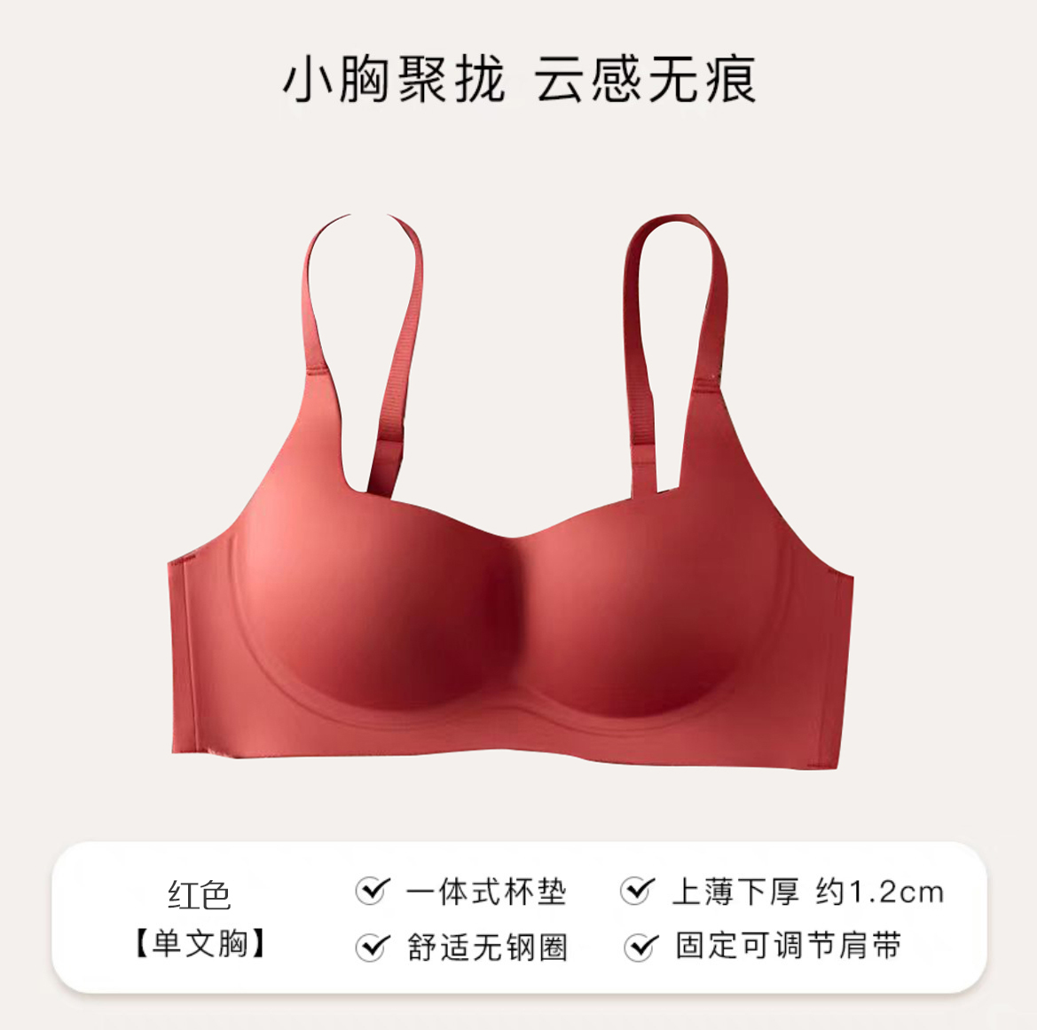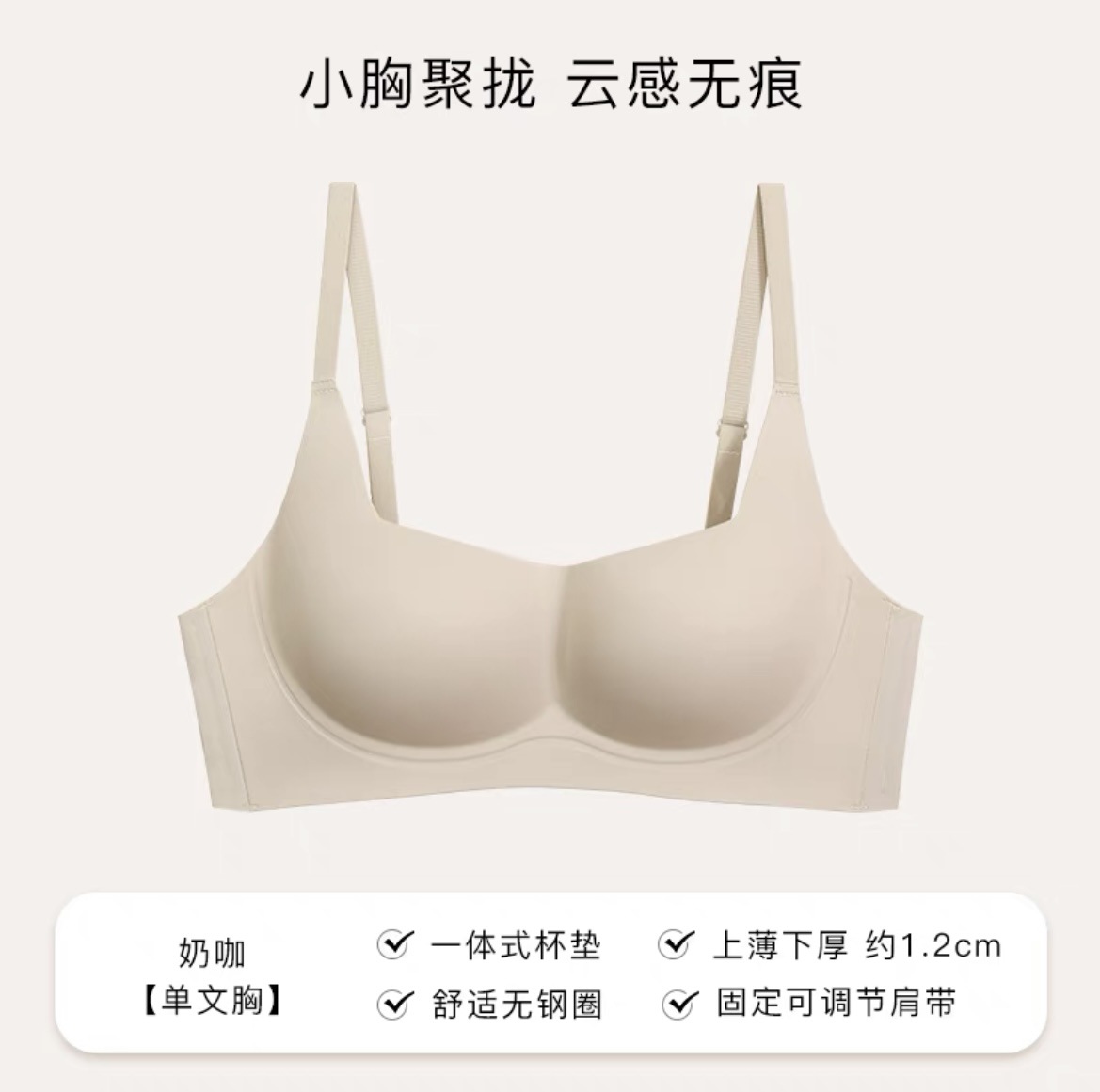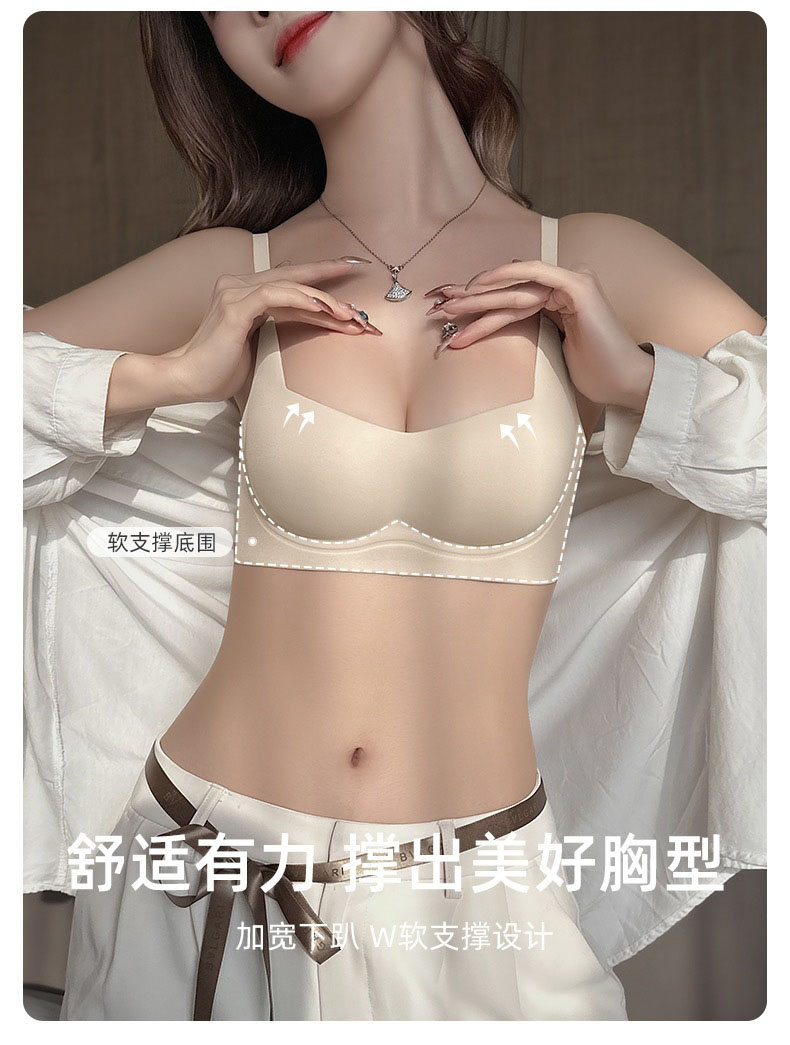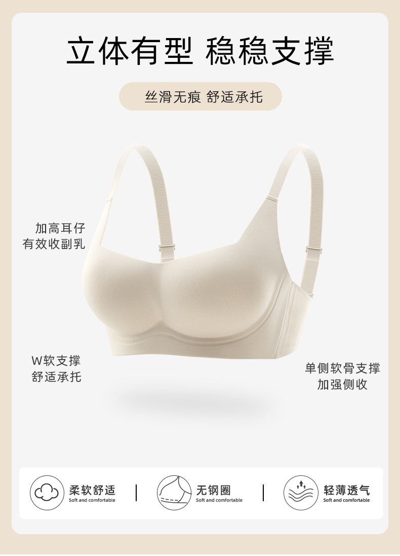 无痕云感内衣女小胸聚拢上托防下垂软支撑无钢圈收副乳文胸打造完美漫画胸